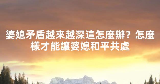 婆媳矛盾越來越深這怎麼辦?怎麼樣才能讓婆媳和平共處